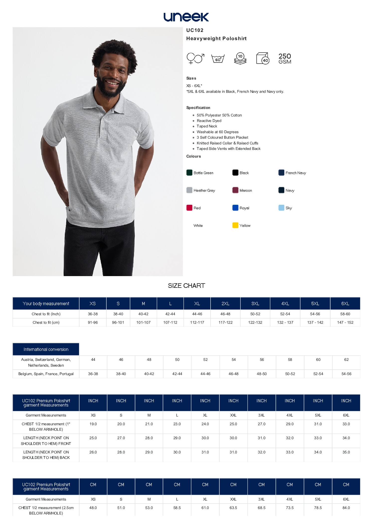 Uneek Heavyweight Poloshirt UC102 250gsm Unisex