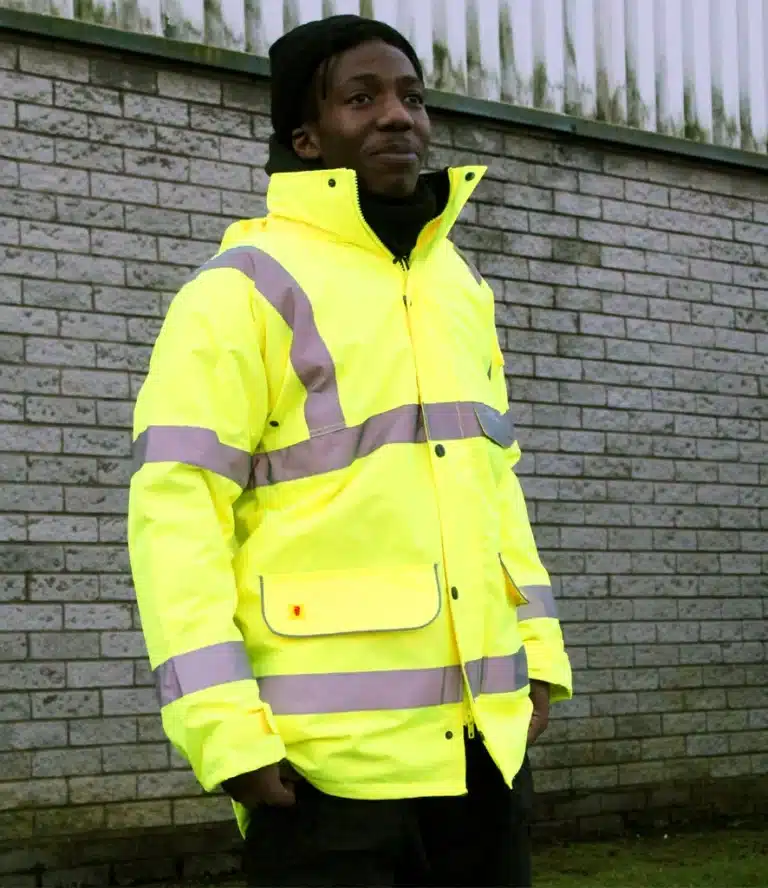 • Two reflective bands around the body, sleeves and one over each shoulder.